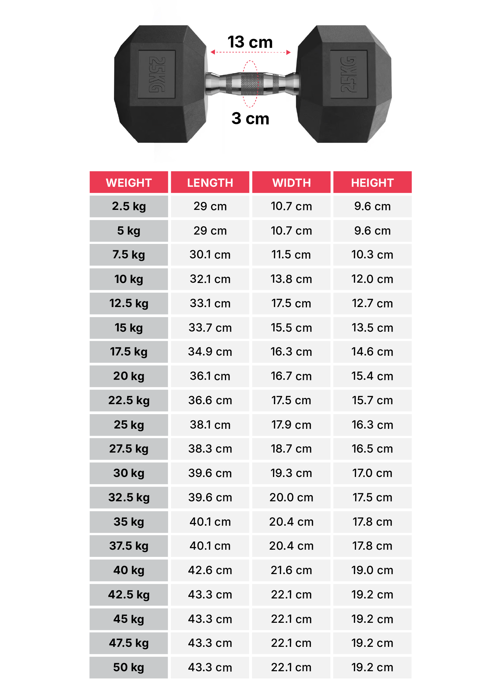 Angaben der Gewichte im Hantelkopf eingraviert für dauerhafte Lesbarkeit.
