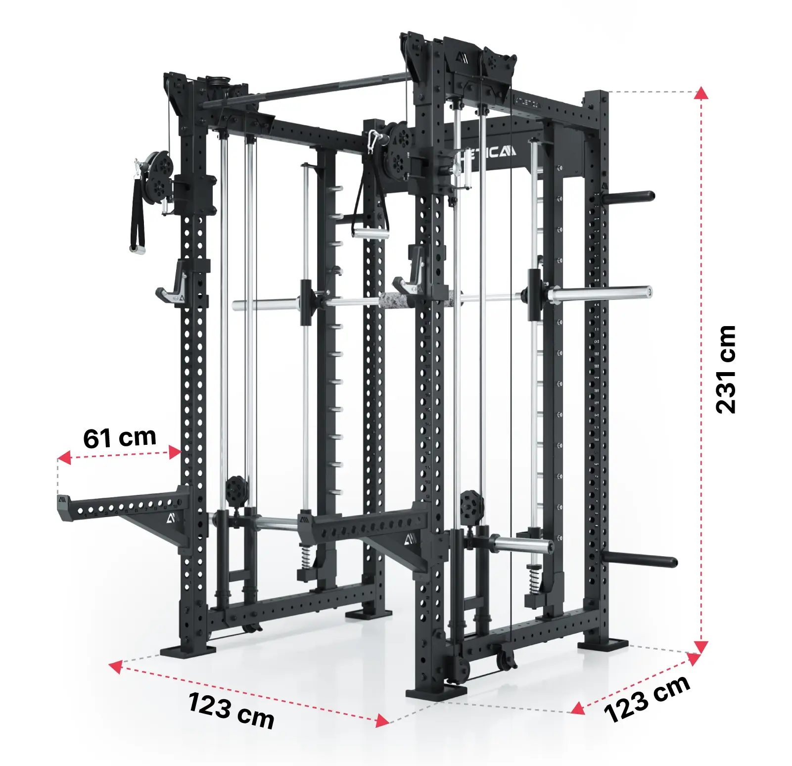 Die R8-Bradley vereint die Stabilität eines Power Racks mit der Flexibilität einer Cable-Cross-Kraftstation.