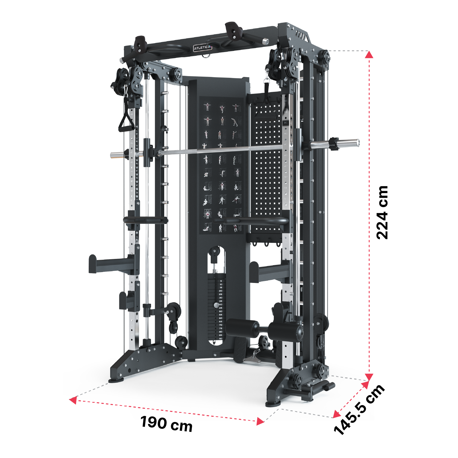 Inklusive Smith Machine und Langhantel